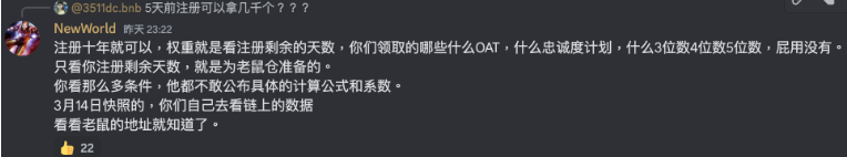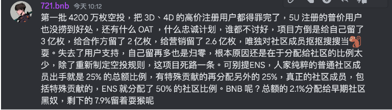 社群对于这次的空投机制感到不满,在 Discord 的中文社群骂声连连,据动区详细考察后,发现社群不满的地方主要可以分为成三大类别: